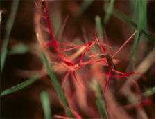 FILO ROSSO (Laetisaria fusiformis)Questa malattia è una forma parassitaria della famiglia dei funghi. I funghi crescono per tutto l'anno. Questi funghi si alimentano ricavando dal prato le sostanze nutrienti. La malattia si sparge sul prato inglese sotto forma di spore. Le spore si diffondono grazie al vento, all'aria, all'acqua e al calpestio delle persone.Il Filo Rosso si presenta in primavera e in autunno, durante i periodi umidi quando le temperature vanno dai 16°C ai 24°C. Questa malattia si fa sentire particolarmente su tappeti erbosi che crescono lantamente a motivo di carenza di azoto. Le varietà più vulnerabili a questa malattia sono la Poa, il Loietto e l'Agrostide. COME RICONOSCERE IL FILO ROSSO I primi sintomi evidenti in primavera sono zone di prato impregnate di acqua. Le foglie infette una volta aciutte si sbiadiranno assumendo un colore nero-bronzo. Foglie infette si mischiano con foglie sane dando al prato un aspetto stracciato. In periodi umidi il fungo si sviluppa rapidamente sulla foglia e sul fondo della pianta. Il fungo produce filetti o aree dal colore rosa corallo al colore rosso cupo sulle punte delle foglie marroni dell'erba. I filetti possono sporgere anche di due centimetri dalla foglia e sono facilmente visibili, da qui il nome "filo rosso". COME TRATTARE IL FILO ROSSO L'invasione del fungo da Filo Rosso è rapida e le foglie cominciano a morire appena due giorni dopo essere state infettate. Ciò rende il Filo Rosso difficile da controllare. Il miglior trattamento per questa malattia è curare il prato in modo adeguato al fine di mantenerlo sano. Alcuni consigli da seguire sono i seguenti: